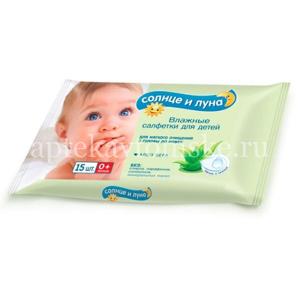 Салфетки детские AURA влажн. Солнце + Луна №15 с алоэ и вит. E (Коттон клаб/Россия)