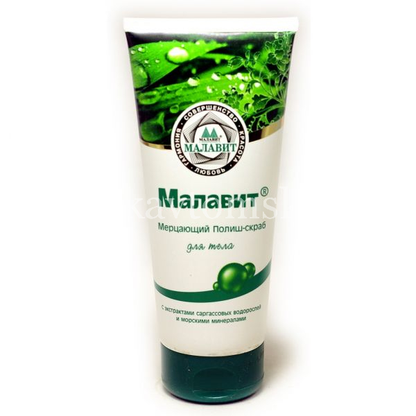 Полиш-скраб для тела «Малавит» мерцающий — бережно очищает и полирует кожу тела, придавая ей мягкость и шелковистость. Не царапает и не травмирует кожу. Обладает отбеливающим эффектом за счет механического пилинга.