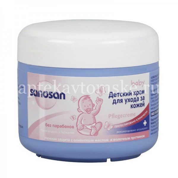 Детский крем для ухода Sanosan не содержит парафинового масла и красителей. Клинически протестирован.