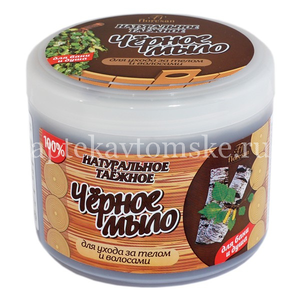Черное таежное мыло имеет полностью натуральное происхождение. Естественные сапонины, которые содержатся в мыльном корне, являются его непосредственной основой. В состав черного таежного мыла входит березовый деготь, что и придает консистенции такой характерный темный цвет. В составе мыла имеются полезные экстракты различных лекарственных растений, таких как хмель, репейник, чистотел, багульник болотный, крапива и даже масло эвкалипта. Благодаря натуральности и огромной пользы всех находящихся в составе экстрактов, черное мыло может быть использовано как в качестве геля для душа, так и стать заменой шампуню. Для большего воздействия полезных веществ на кожу мыло лучше всего использовать во время банных процедур.