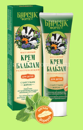 Крем-бальзам БАРСУКОР массажн. разогр. детский с барсучьим жиром 50мл (Лекус/Россия)
