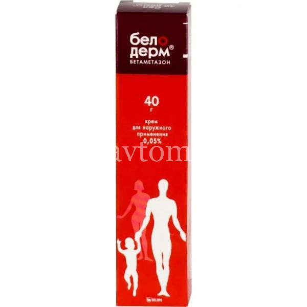 Фармакологическое действие ГКС для наружного применения. Оказывает противовоспалительное, противозудное, противоаллергическое, сосудосуживающее, антиэкссудативное и антипролиферативное действие. При нанесении на поверхность кожи, препарат оказывает быстрое и сильное действие в очаге воспаления, уменьшая выраженность объективных симптомов (эритема, отек, лихенификация) и субъективных ощущений (зуд, раздражение, боль). Фармакокинетика Данные о фармакокинетике препарата Белодерм не предоставлены. Показания Состояния, при которых эффективна терапия топическими ГКС, в т.ч.: &, -, атопический дерматит, &, -, нейродермит, &, -, аллергический контактный дерматит, &, -, экзема (различные формы), &, -, контактный дерматит (в т.ч. профессиональный), &, -, неаллергические дерматиты (в т.ч. солнечный и лучевой дерматит), &, -, реакции на укусы насекомых, &, -, псориаз, &, -, буллезные дерматозы, &, -, дискоидная красная волчанка, &, -, красный плоский лишай, &, -, экссудативная многоформная эритема, &, -, кожный зуд различной этиологии. Режим дозирования Препарат предназначен только для наружного применения. Крем или мазь для наружного применения наносят на пораженный участок кожи тонким слоем 2 раза/сут, слегка втирая. На участки с более плотной кожей (например, локти, ладони и стопы), а также места, с которых препарат легко стирается, препарат можно наносить чаще. Продолжительность непрерывного лечения обычно составляет не более 4 недель. Для профилактики рецидивов при лечении хронических заболеваний, терапию следует продолжать еще некоторое время после исчезновения всех симптомов. В течение года возможно проведение повторных курсов терапии. Крем для наружного применения применяется для терапии острых, в т.ч. мокнущих поражений кожи. Мазь для наружного применения предназначен для терапии подострых и хронических дерматозов, в т.ч. сухих, лихенизированных и елушащихся поражений, или в тех случаях, когда необходимо окклюзионное действие мази. Побочное действие Побочные эффекты, как правило, носят слабовыраженный характер. Дерматологические реакции: редко - реакции гиперчувствительности (зуд, жжение, гиперемия), акнеподобные изменения, гипопигментация, стрии, атрофия кожи, гипертрихоз, телеангиэктазии, вторичные инфекции кожи. При развитии реакции гиперчувствительности или побочных реакций препарат следует отменить. Противопоказания &, -, туберкулез кожи, &, -, кожные проявления сифилиса, &, -, ветряная оспа, &, -, вирусные инфекции кожи, &, -, кожные поствакцинальные реакции, &, -, открытые раны, &, -, трофические язвы, &, -, розацеа, &, -, вульгарные угри, &, -, детский возраст до 6 мес, &, -, повышенная чувствительность к бетаметазону или к любому из вспомогательных компонентов препарата. Применение при беременности и кормлении грудью Применение препарата Белодерм у беременных допускается в тех случаях, когда предполагаемая польза для матери превышает риск для плода. В таких случаях применение препарата должно быть непродолжительным и ограничиваться небольшими участками кожных покровов. В период грудного вскармливания применение препарата возможно по строгим показаниям, но при этом препарат нельзя наносить на кожу молочной железы перед кормлением. Особые указания Не рекомендуется длительное применение препарата на коже лица, т.к. возможно развитие розацеа, периорально