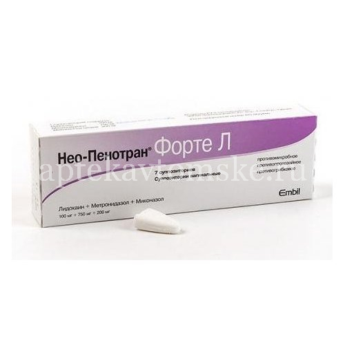 Суппозитории Нео-Пенотран Форте-Л содержат миконазол, оказывающий противогрибковое действие, метронидазол, оказывающий антибактериальное и антитрихомонадное действие, а также лидокаин, дающий местный анестезирующий эффект.