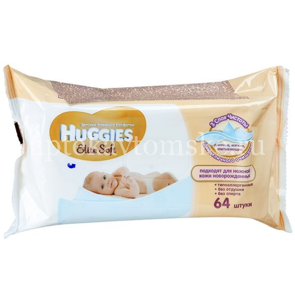 Салфетки Huggies Elite Soft детские влажные, 64 шт.