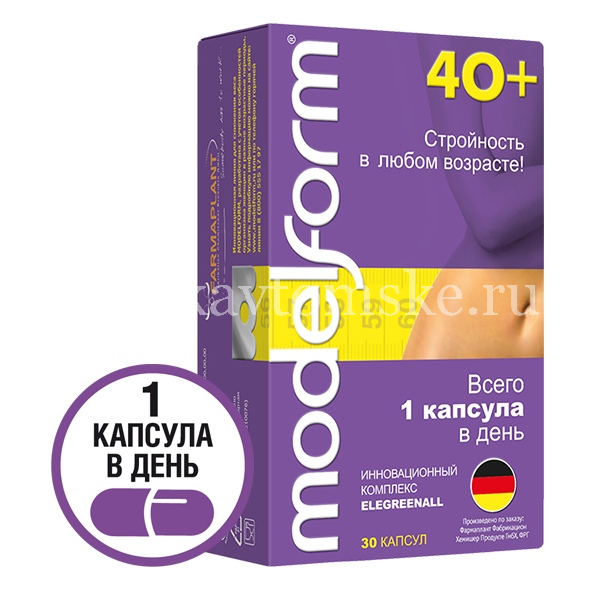 Биологически активная добавка к пище МОДЕЛЬФОРМ 40+ (MODELFORM 40+) на основе растительных экстрактов. Для лиц, контролирующих массу тела.