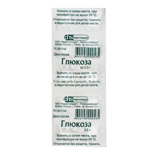 Глюкоза таб. 500мг №20 (Фармстандарт-Лексредства/Россия)