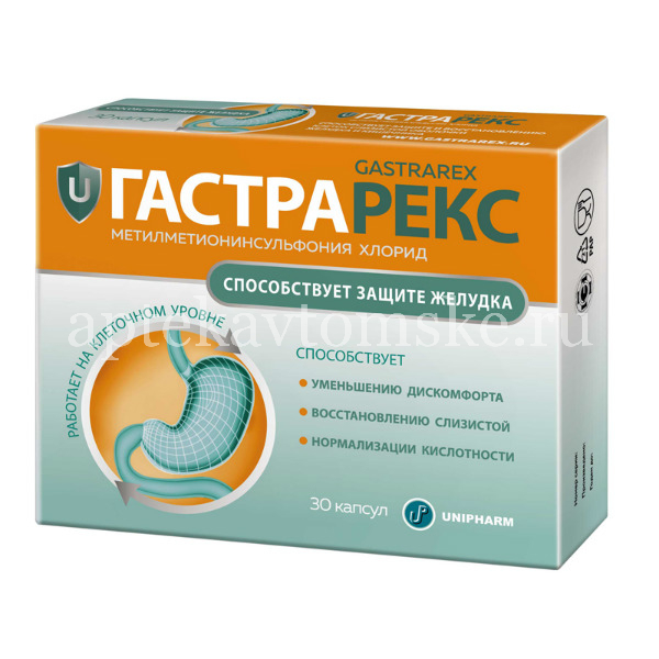 Работает на клеточном уровне ГАСТРАРЕКС, благодаря входящему в его состав метилметионинсульфония хлориду, способствует: ? Повышению защитных свойств слизистой оболочки желудка и двенадцатиперстной кишки от влияния агрессивных факторов ? Нормализации повышенной или пониженной кислотности желудочного сока ? Улучшению секреторной функции желудка и двенадцатиперстной кишки ? Нормализации моторики желудка и кишечника ? Активации процессов восстановления в слизистой оболочке желудка и кишечника на клеточном уровне ? Уменьшению проявления дискомфорта в желудочно-кишечном тракте