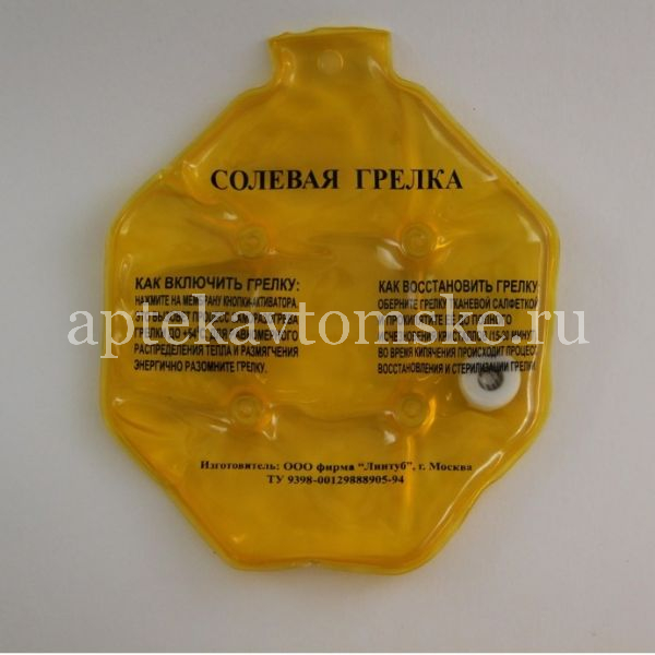 Солевая грелка "Детская" - это замечательное физиотерапевтическое средство от простуды и насморка. Просто слегка перегните "волшебную" палочку-пускатель, плавающую в солевом растворе внутри солевой грелки, и она разогреется всего за несколько секунд! Солевая грелка "Детская" глубоко прогреет область уха, горла или носа. При этом солевая грелка абсолютно безопасна! Температура нагрева до +52°С рекомендована врачами, как оптимальная для физиотерапевтических процедур, и исключает возможность ожога или перегрева.