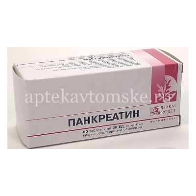 Панкреатин таб. п/об. р-р/кишечн. 30ЕД №60 фл.полимер. (Фармпроект/Россия)