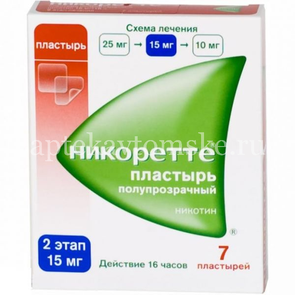 Cmax никотина в плазме крови после наложения пластыря достигается через 6–10 ч и после применения пластыря 15 мг/16 ч составляет 9–15 нг/мл. Если пластырь 15 мг/16 ч оставляют на 24 ч (а не на 16 ч), то концентрация никотина в течение последних 8 ч снижается в среднем с 7, 2 до 5, 6 нг/мл. При использовании пластырей меньшего размера можно ожидать сходных изменений концентрации никотина в плазме.