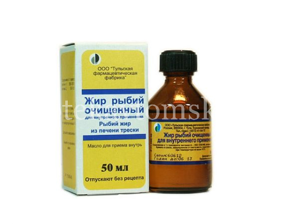 Рыбий жир очищенный для внутреннего применения фл.(масло орал.) 50мл (Тульская ФФ/Россия)