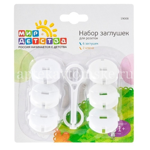 Набор заглушек для розеток "Мир детства", 6 штук, 2 ключа (арт. 19008).