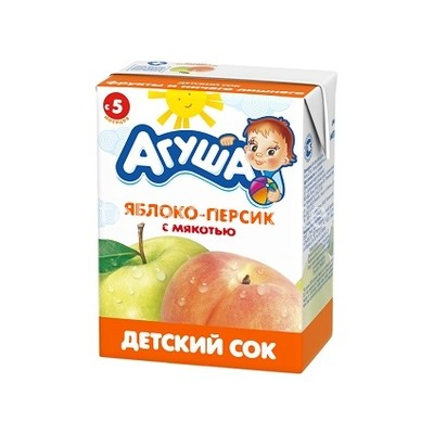 Сок АГУША яблоко и персик с мяк. (с 5 мес.) 200мл (Вимм-Билль-Данн/Россия)