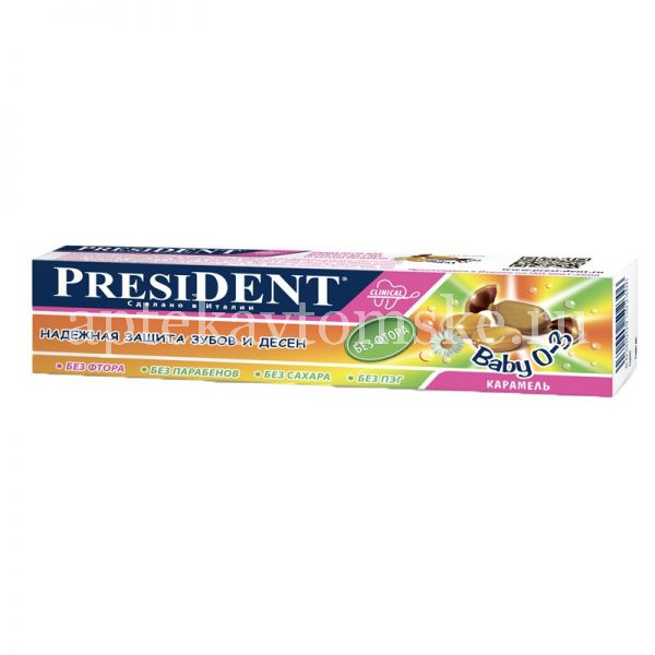 Зубная паста детская ПРЕЗИДЕНТ Baby (до 3-х лет) карамель 30мл (Betafarma/Италия)
