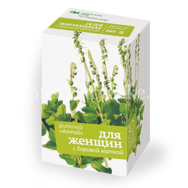 Фиточай «Алтай» №2 «Для женщин. С боровой маткой» способствует устранению воспалительных гинекологических заболеваний, нарушений менструального цикла и бесплодия, эрозии шейки матки, благотворно влияет на общее состояние при климаксе и повышает иммунитет.