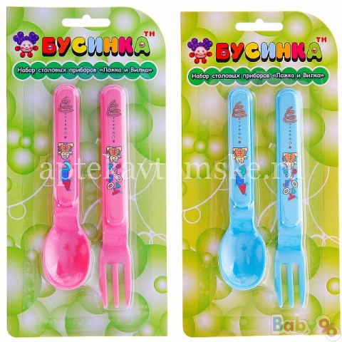 Детский набор столовых приборов (ложка и вилка) «Бусинка» рекомендуется для детей старше одного года.