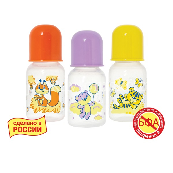 Бутылочка произведена из полипропилена - термостойкого небьющегося пластика, не вступающего в химическую реакцию с молоком и не выделяющего вредных веществ при стерилизации. Бутылочку прямой формы удобно использовать и легко мыть. Можно мыть в посудомоечной машине и стерилизовать в СВЧ-печи.