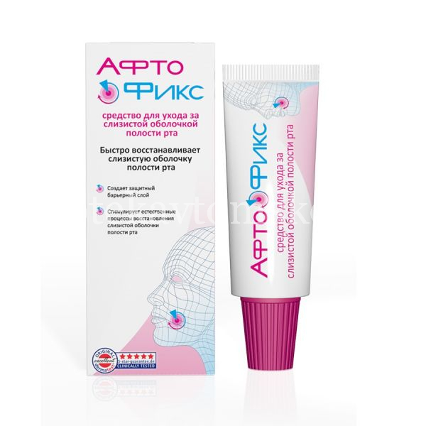 АфтоФикс - плёнкообразующее средство для ухода за слизистой ротовой полости. Предназначено для местного применения при дискомфорте слизистой оболочки полости рта и десен, в том числе во время ношения брекет-систем и зубных протезов.